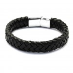 Βραχιόλι Ατσάλινο με Δερμάτινη Πλεξούξα